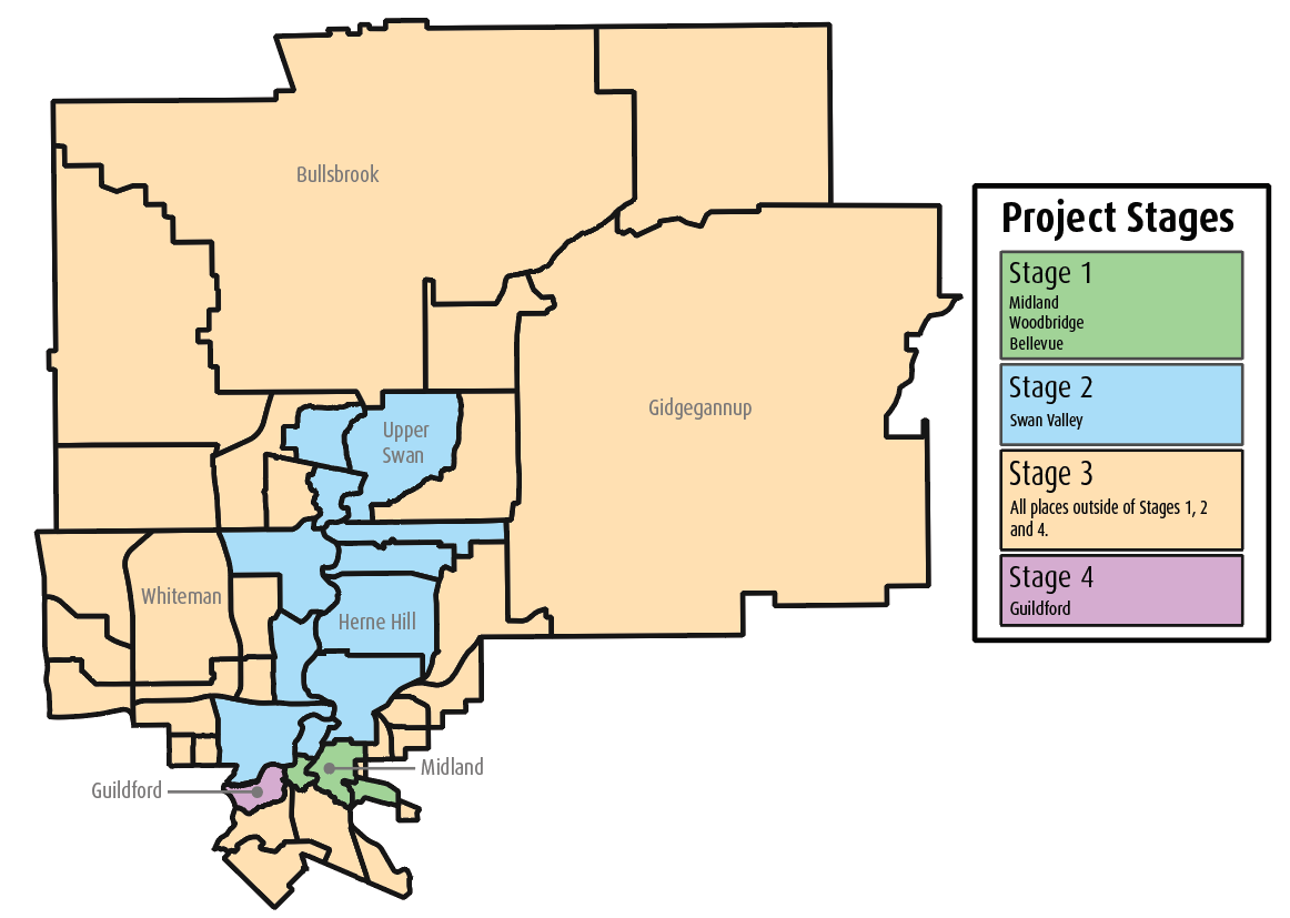 The Local Heritage Survey review will be conducted in stages to allow a detailed review of each area. Stage one comprises of Midland, Woodbridge and Bellevue.